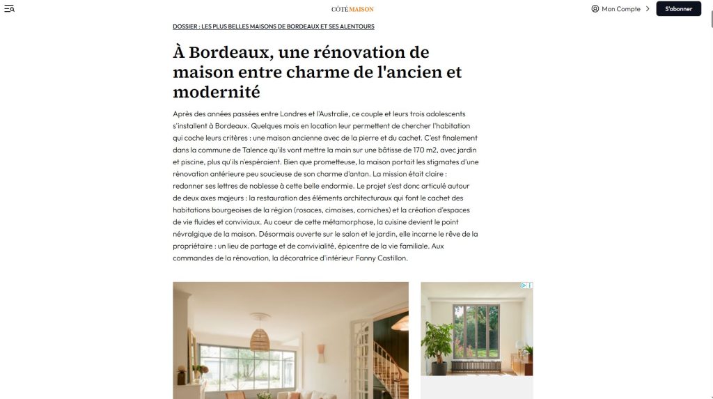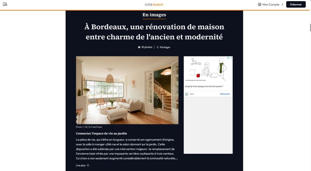 J’accompagne mes clients dans leurs projets de rénovation d’appartements et de maisons à Bordeaux et partout en France, en apportant une réponse sur mesure à chaque besoin.
